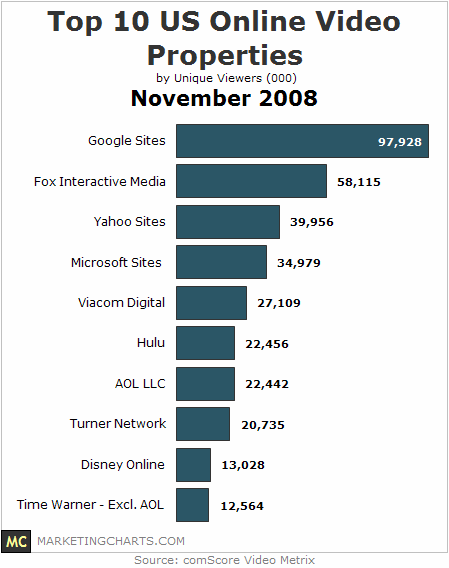 According to Comscore, 77% of the US Internet audience viewed video online in November 2008 for a total of 12.7B videos viewed, growing 34% compared to 2007. Do you really consider your 2009 campaigns without it?
