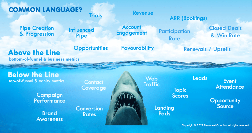 Marketers talk about the top of the funnel, with a lot of vanity metrics, while sales talk about the bottom of the funnel with business metrics. Few salespeople have a knowledge of the mysteries of marketing, and conversely, few marketers have really been interested in making sales forecasts, complex sales planning, or closing a deal.