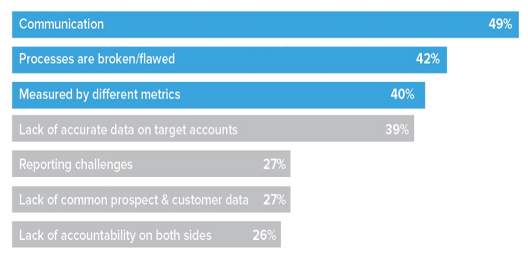 According to research, miscommunication comes first, followed by ill-adapted processes and inconsistent metrics among the teams.