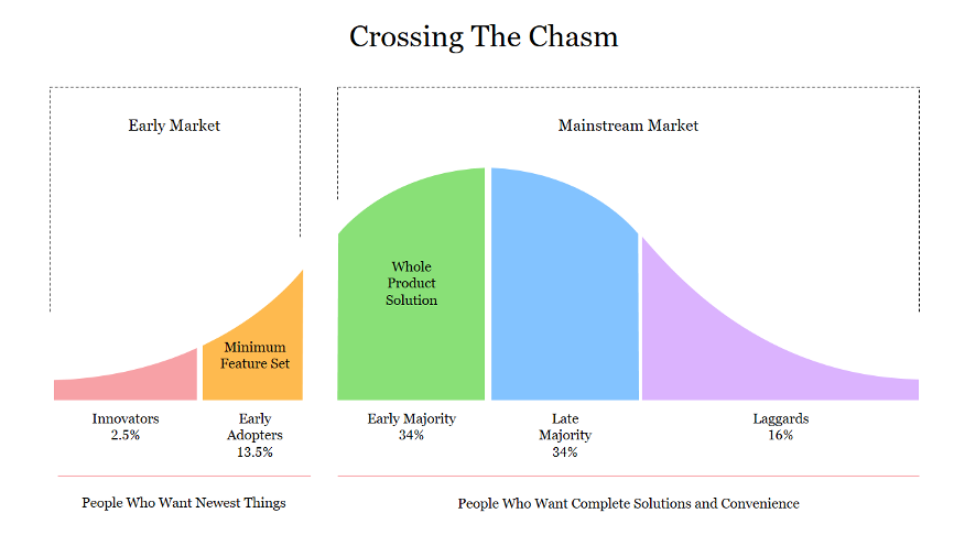 ‘The chasm between ‘charismatic’ early adopters and the ‘pragmatic’ early majority is where high-tech fortunes are won or lost.’
