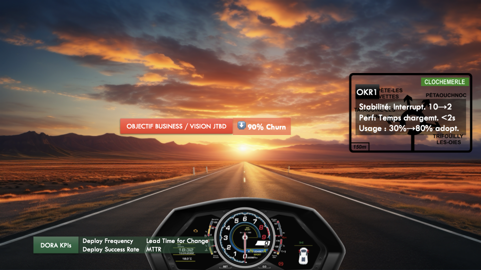 At CloudBees, my keynote audience resonated with the message that OKRs are more than a management tool—they’re a mindset shift. 🎥 Take a look at the video. To illustrate this, I used the metaphor of direction signs on a car journey for OKRs, emphasizing how they guide teams toward stretch goals, in contrast to KPIs, which are lagging indicators akin to a car’s dashboard metrics. This approach helped the audience understand how to align technical devOps KPIs with business OKRs, fostering synergy between technical teams and overarching business objectives.