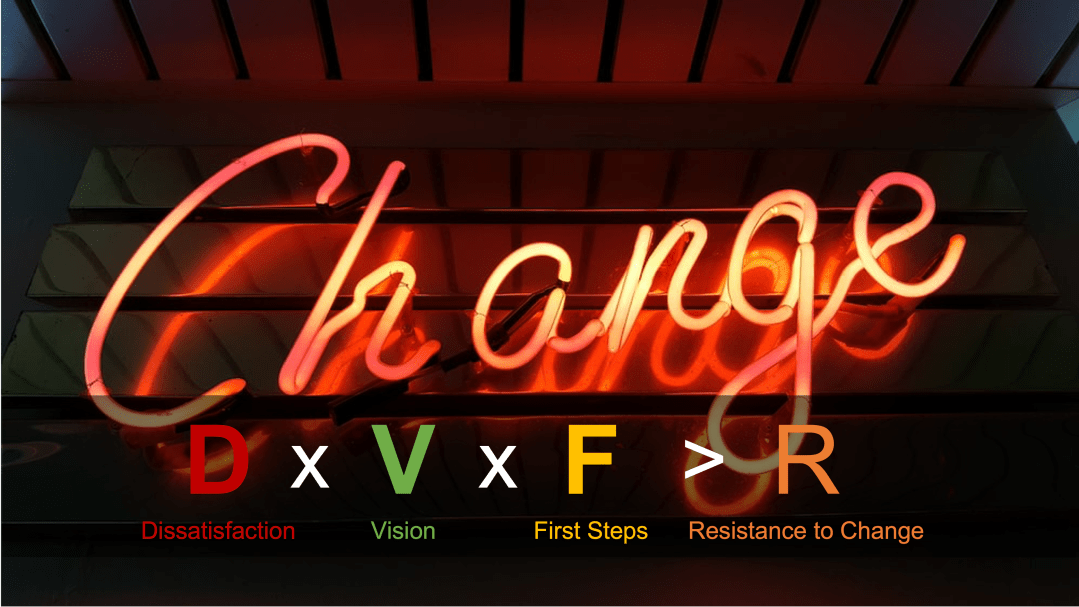 Overcoming resistance to change in business transformations using the formula DxVxF >R - SaaS as an example